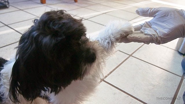 I'll be honest. I took a couple sniff of that doggie pastry, but it didn't smell like a brownie to me... More like nothing at all... cardboard? But Pudding seemed to really like it. She's a really smart puppy. I would hide a little snack, as in this case the brownie, and she'd immediately sit. This girl already knows that's what she has to do to get that treat.
